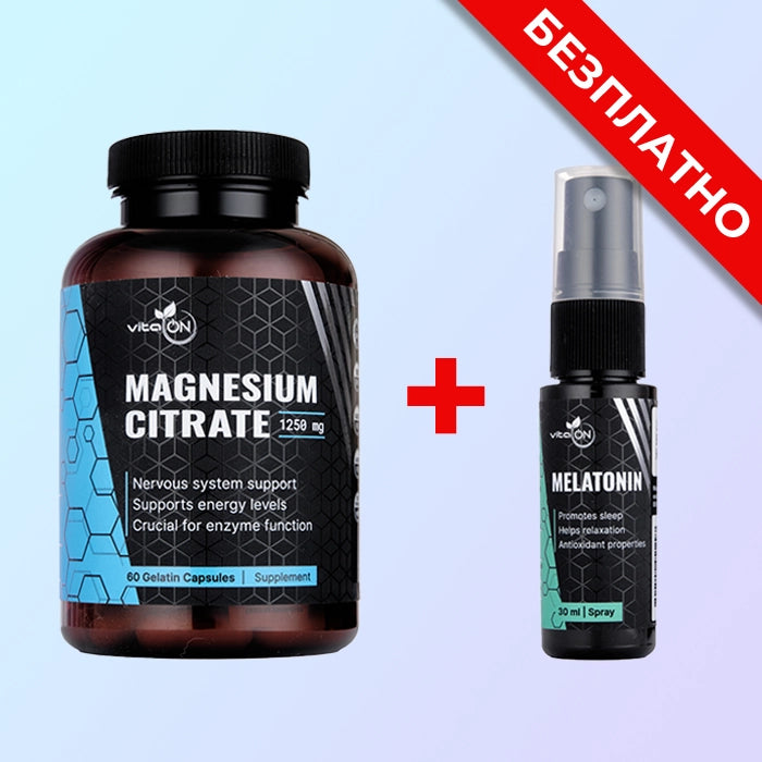 Заедно, Магнезиев цитрат и Мелатонин спрей са съвършената формула за пълен баланс между енергия и релакс. През деня магнезият ви помага да сте активни, концентрирани и спокойни, а през нощта мелатонинът ви води към дълбок и възстановителен сън. Това е естественият начин да се погрижите за себе си – без стрес, без напрежение, само с хармония и жизненост. Открийте силата на природата с VitaOn – защото доброто здраве започва с вътрешен баланс. 🌿