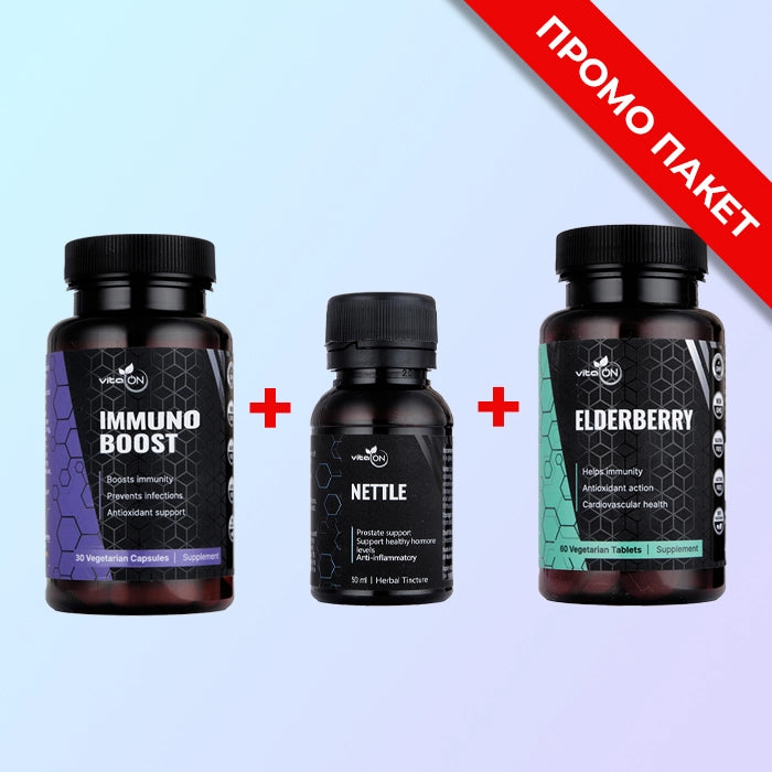 Запознайте се с нашия специален пакет, който съчетава мощта на хранителна добавка “Имуностимулант”, силата на Черния бъз и билковата подкрепа от Коприва. Тази комбинация е създадена за хора, които искат да се чувстват по-защитени, по-енергични и по-балансирани — през натоварените дни, сезоните на настинки и моменти на стрес. Всеки от продуктите допринася с уникален принос към здравето, а заедно те циркулират като «триместен щит».